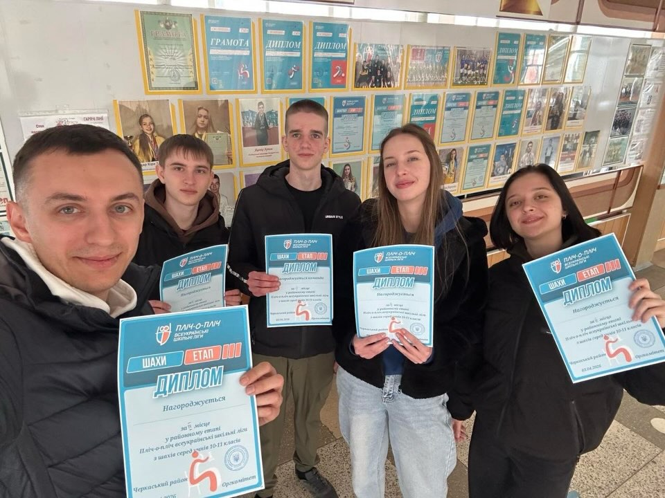 Наші інтелектуали - серед найкращих! Команда нашого ліцею виборола ІІІ місце у ІІІ етапі Всеукраїнських шкільних ліг «Пліч-о-пліч» з шахів серед учнів 10-11-х класів Черкаського району!