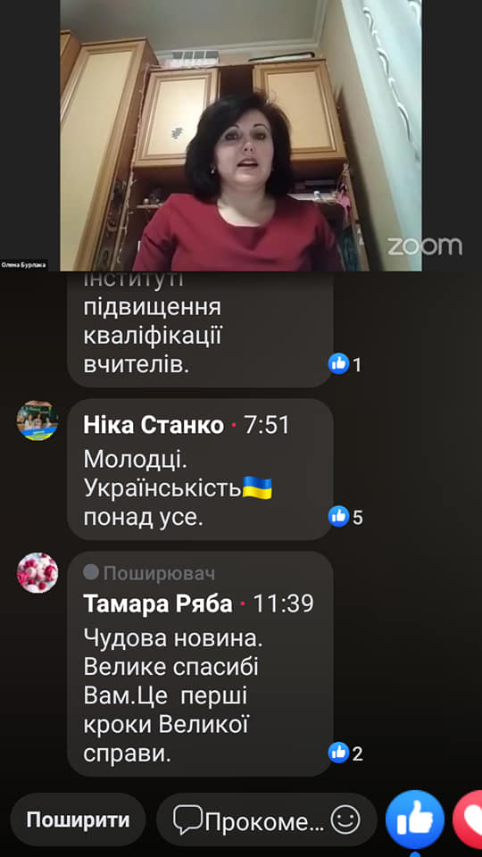 Цього ж дня О.В. Бурлака виступила спікером у пізнавальному вебінарі авторського колективу "Нові підручники історії для 8 класів: інструмент для вчителя, мотивація для учнів, засіб від нудьги" (УОВЦ "Оріон"). Під час заходу обговорювали методичні родзинки підручників, сучасні підходи до створення повноцінних комплектів навчальної літератури.