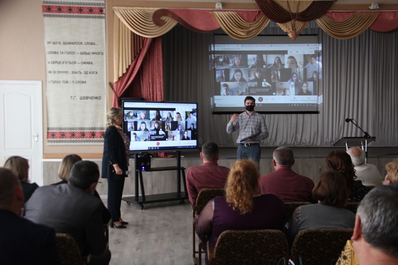 Директорка гімназії Ірина Топчій презентувала гостям, як учителі та учні закладу навчаються з використанням дистанційних форм. Вона розповіла про використання платформи G Suit For Education та разом з присутніми дистанційно завітала на уроки, які в цей час проходили онлайн в гімназії.
