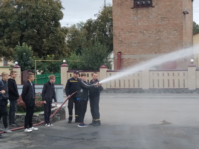 Учні 9-го класу разом із класним керівником Іриною Андріївною Маранською відвідали пожежну частину, де з цікавістю слухали розповідь про нелегку працю пожежників, швидкість виконання завдань, вміння діяти грамотно, чітко, впевнено, надаючи допомогу потерпілим.