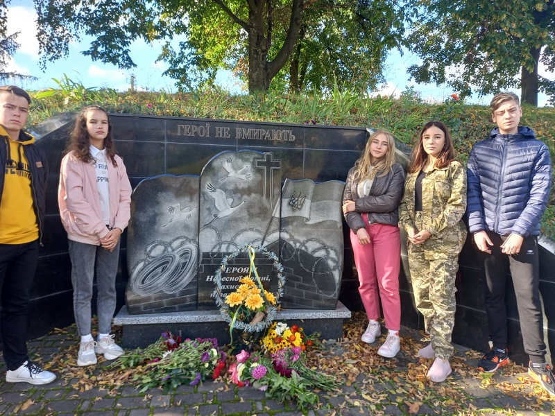 Ця війна - це війна за збереження державної незалежності і територіальної цілісності України. Тому оминути тему війни ми не могли. Ліцеїсти зібралися на загальну лінійку, під час якої вчитель історії Олена Бурлака провела короткий екскурс в історію війни на Сході України, окреслила гуманітарні втрати цієї війни для України. Ліцеїсти вшанували пам’ять воїнів-захисників і жертв війни хвилиною мовчання, а також заявити про власну готовність будувати безпечний, справедливий світ без війни. Представники від класів разом із заступником директора Галиною Покась поклали квіти до пам’ятного знаку Героям Небесної Сотні та захисникам незалежності нашої держави, які загинули в зоні АТО/ООС. Під час виховних годин ліцеїсти провели відкриті діалоги-обговорення просвітницького відео "Діалоги про війну" від Українського інституту національної пам'яті. Ліцеїсти також долучилися до акції «Голуб миру» - написали листи зі словами подяки нашим захисникам-воїнам АТО/ООС, які будуть передані бійцям волонтерами. Також з нагоди Дня миру в ліцеї відбувся турнір з міні-футболу "Золотий м'яч" (8-11 класи), чемпіоном у якому став 9 клас. Учні 8-го та 11 А класу створили колаж «Голуб миру» як символ бажання жити в мирі, добрі та злагоді з усім світом.