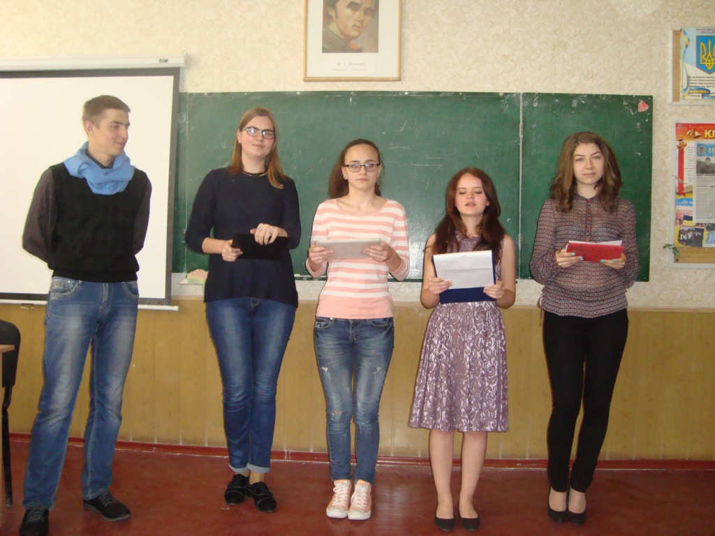 Завітав на свято і сам «Віль’ям Шекспір» (Андрейко А.). Учні розкрили образи улюблених персонажів шекспірівських п’єс: «Ромео і Джульєту» (Петренко Д., Дудник І.), «Гамлета» (Романченко Д.). Учениці 9-го класу Остапенко В., Савенко А., Лисак А. та Гарань В. продекламували відомі сонети Шекспіра.