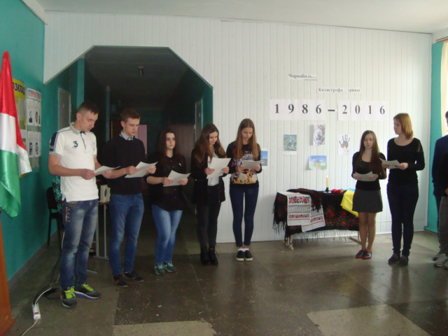 Цього дня навчальний процес в Городищенському економічному ліцеї розпочався лінійкою-реквієм «Чорнобиль болить в моїй душі». Учні 11-Б класу підготували добірку поезій, пісень, статистичних матеріалів, які дозволили учням зануритись в атмосферу трагедії.