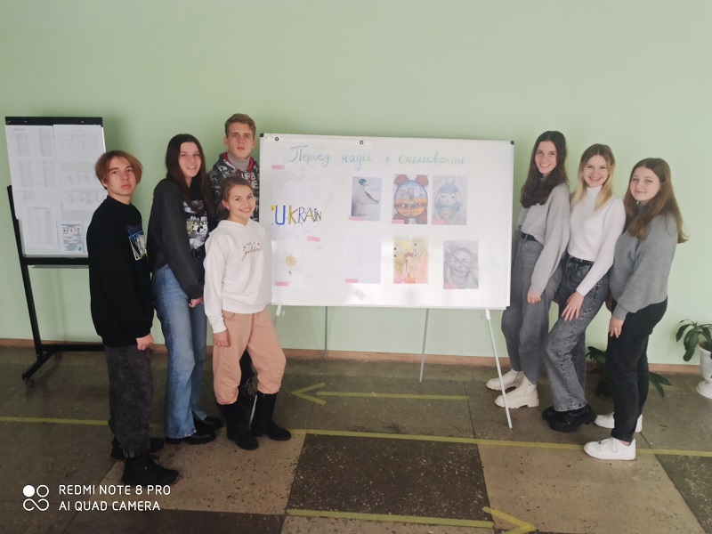 Звісно, що червоною ниткою участі в проєкті було співпереживання жертвам трагедії війни в Україні. Народитися в Україні і знати, що це і є дім, служити добробуту нашої країни, разом стояти за прекрасне майбутнє миру і процвітання, усвідомлювати те, що робить нас щасливими і радісними та брати на себе зобов'язання, які мають мету і значення - питання для розгляду протягом останнього тижня проєкту. На завершення прлєкту було проведено конкурс малюнків "Період надії і сміливості", присвячений подіям боротьби українського народу за відстояння незалежності нашої держави.