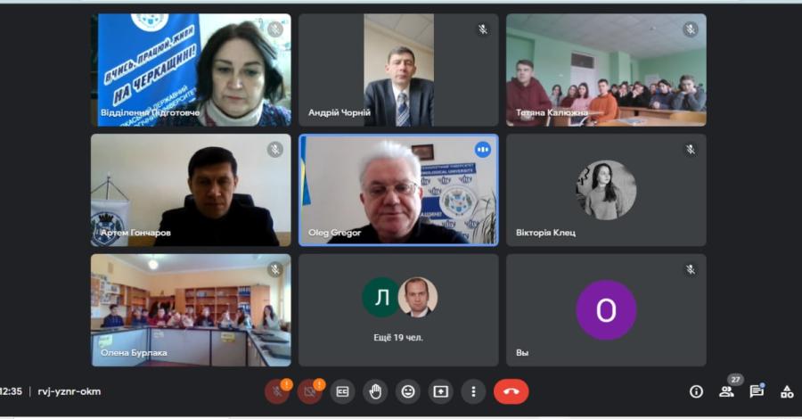 У рамках профорієнтаційних заходів 2 лютого 2023 року учні 11-х класів ліцею взяли участь в онлайн-зустрічі проєкту "Вчись, живи, працюй на Черкащині!" з представниками Черкаського державного технологічного університету. З вітальним ознайомчим словом до учнів звернувся в.о. ректора університету Олег Григор, який розповів про можливості, які відкриває перед абітурієнтами навчання в університеті.
