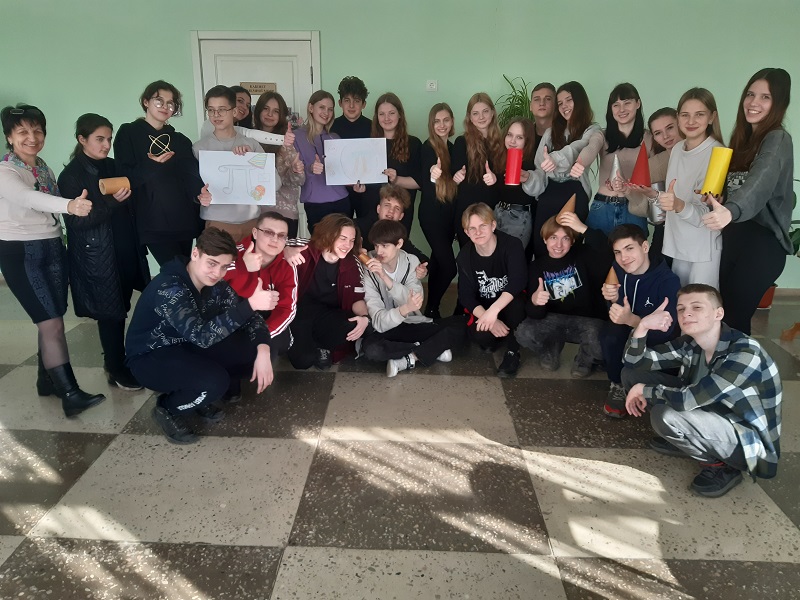 Учні 10 класу (вчитель Гудзь Л.В.) відзначили день числа Пі у формі математичного квесту. Спочатку учні позмагалися у командах: під керівництвом капітанів намалювати фігуру. Конкурс на розв’язування прикладних задач учні виконували в парах. Весела гра “Математичні шахи” особливо припала до душі любителям шахів. У творчому конкурсі учасники мали змогу проявити свою творчість та креативність, малюючи портрет числа Пі.
