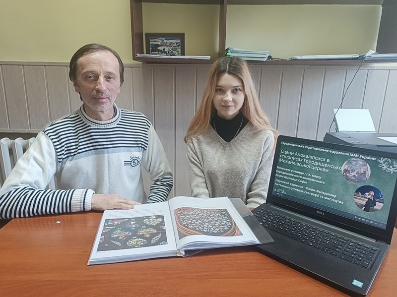 Традиційно взимку завершується щорічний конкурс науково-дослідницьких робіт учнів-членів МАН. Цього навчального року успішно взяли участь у І етапі конкурсу учениця 11-А класу Шаповал Софія з науковим керівником, вчителем географії та мистецтва ліцею Володимиром Антоновичем Пеляком. Вони продовжили серію ліцейних учнівських наукових робіт МАН з дослідження розписів Михайлівської церкви в м. Городищі. Цього разу дослідження були представлені у відділеннях літературознавства та філософії і суспільствознавства. За підсумками всіх етапів випробувань Софія Шаповал в обох відділеннях посіла І місце. Щиро вітаємо наших дослідників з важливою перемогою та бажаємо успіху в наступному етапі конкурсу-захисту МАН.