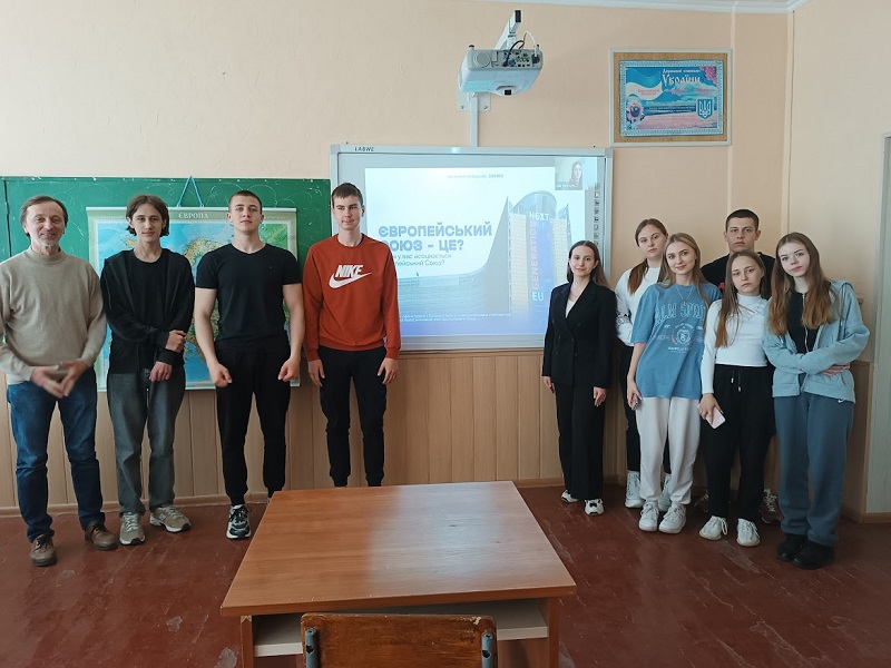 9 травня учні 10-а класу ліцею разом з учителем географії Пеляком Володимиром Антоновичем долучилися до всеукраїнського просвітницького онлайн-заходу з нагоди Дня Європи, організованого Освітнім центром Верховної Ради України. Захід був присвячений темі передумов євроінтеграційних процесів та структури Європейського Союзу, організації, яка надає неабияку моральну та матеріальну пітримку Україні у складні часи протистояння російській агресії.