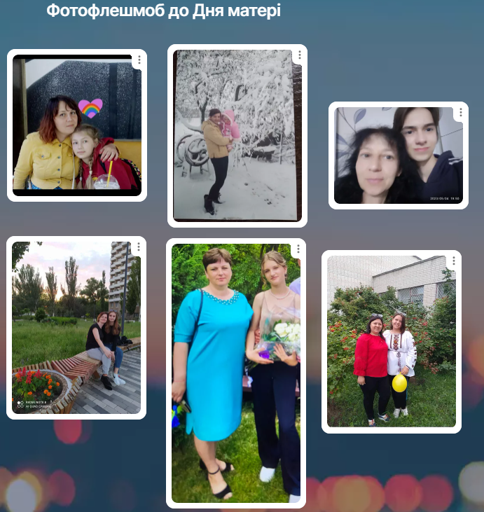 Фотофлешмоб до Дня матері було проведено в ліцеї. За умовами діти мали зробити фото з найріднішими і прикріпити до віртуальної дошки Padlet. У підсумку вийшла ось така чудова галерея.
