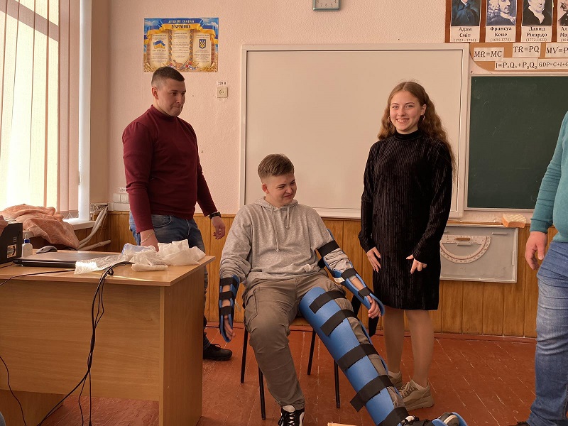 23 березня учні 10 класу стали учасниками майстер-класу із надання домедичної допомоги травматологічним хворим. Під час майстер-класу були розглянуті приклади випадків, що потребують невідкладної допомоги постраждалим і можуть виникнути у побуті, на вулиці, у місцях скупчення людей.