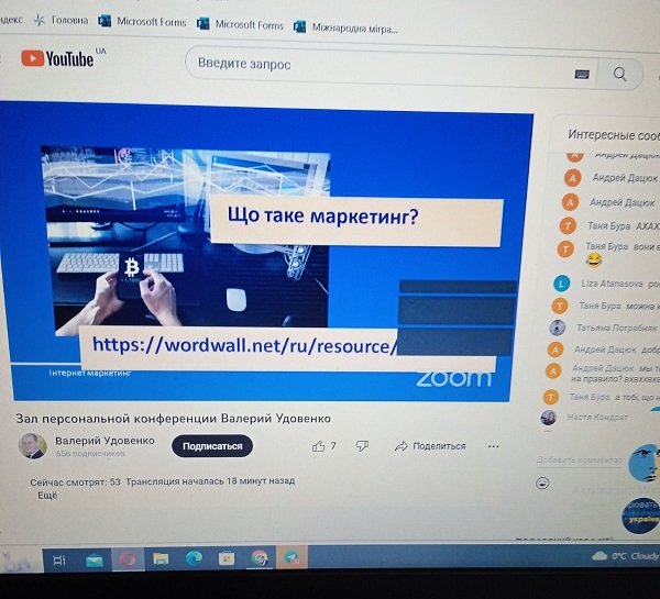 Протягом 27 лютого - 1 березня учні 9-11 класів ліцею Почтар Анна, Федосова Євгенія, Козаченко Владислава, Атаманенко Богдан, Завгородня Вероніка, Жежер Анна, Карпенко Вікторія, Бурлака Назарій разом з учителькою економіки Тетяною Василівною Чорною взяли участь в онлайн марафоні "Інтернет маркетинг" для учнів 7-11 класів. Захід проводився молодіжною громадською організацією «Інститут інформаційного суспільства».