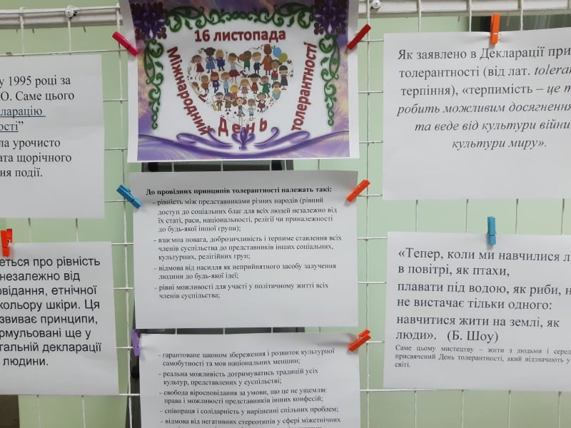 16 листопада в усіх країнах світу відзначається Міжнародній День Толерантності. Щоб привернути увагу громадськості до тих небезпек, які може спричинити нетерпимість, учнями Городищенського економічного ліцею під керівництвом заступника директора Галини Покась було проведено акцію «Подаруй свою усмішку світу».