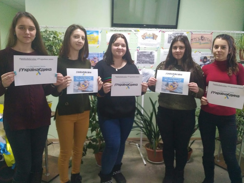 22 січня учні та вчителі нашого ліцею долучилися до загальнодержавного відзначення Дня Соборності України. Учитель історії О.В. Бурлака разом з учнями 11-Б класу Вікторією Швидкою та Вікторією Горопекою провели просвітницьку годину "Історичний календар "Герої та символи боротьби за незалежність України".